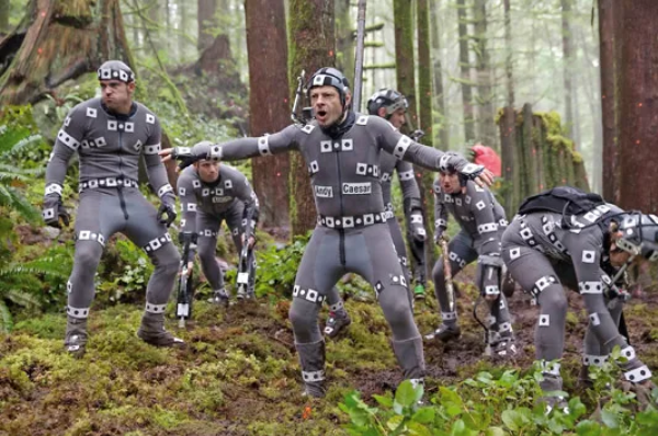 The digital apes – 12 hero characters, plus around 20 'extras' – were created using a mixture of hand animation and motion-capture footage of Andy Serkis and the other actors portraying the creatures.