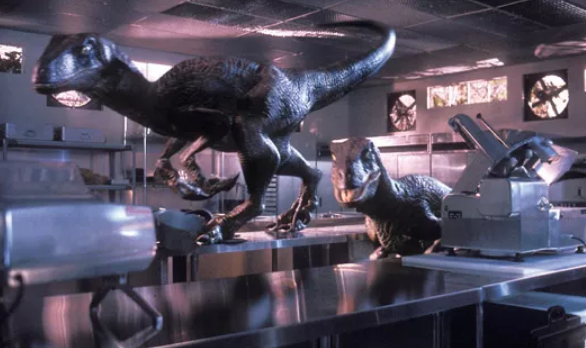 Muren credits dinosaur supervisor Phil Tippett and, of course, director Steven Spielberg for pushing the unsafe documentary film style. "We wanted the animals to create the feeling that we wouldn't know what was going to happen next," Muren says.