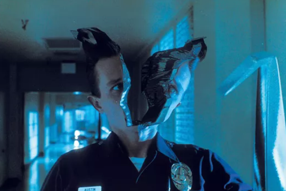 Another challenge was animation: when the T-1000 adopted actor Robert Patrick's form, animators moved it like a person. When it was liquid, animators moved the fluid. "We figured out as much as we could to keep the geometry from tearing," says Muren. "But we had an early copy of Photoshop, so if something didn't work [art director] Doug Chiang would go in and paint the frame."